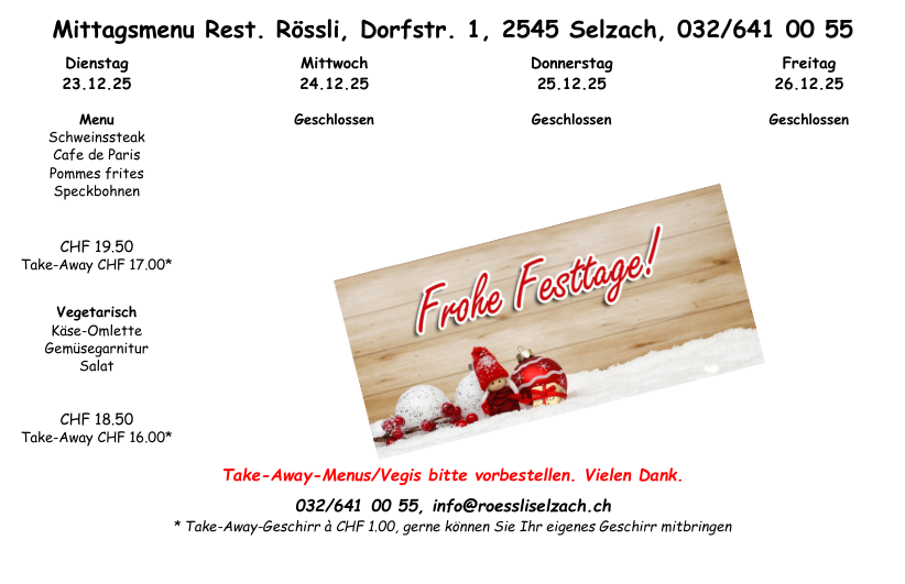 Für das uns geschenkte Vertrauen im vergangenen Jahr bedanken wir uns ganz herzlich. Wir wünschen Ihnen frohe Festtage und ein glückliches und erfolgreiches 2026.